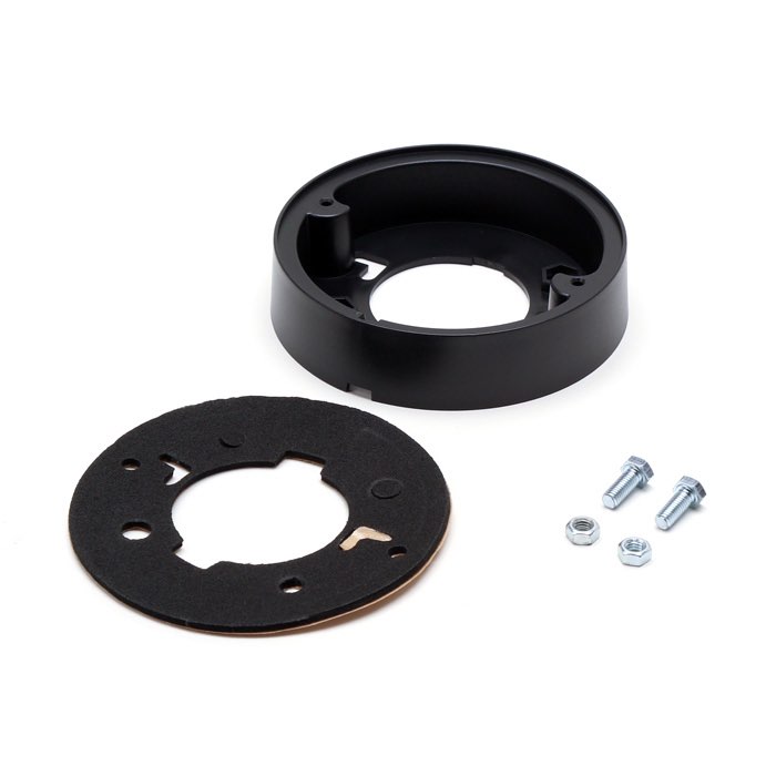 Mounting base for mounting the round directional, reverse, and stop/tail lamp assemblies introduced on the 1995 & 1997 NAS 90s. Also used with reverse and rear fog lamps on rest of world Defenders models from 2001 - 2016. Includes gasket, screws, and nuts. Does not include plain washers or lock washers.