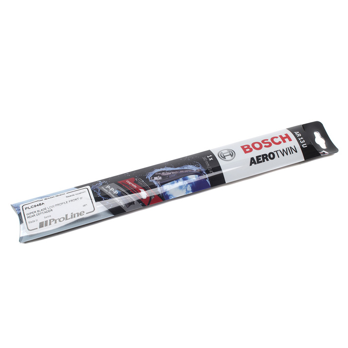 Bosch "Aero Twin" low-profile single wiper blade for Defender. Fits the front and rear wiper arms.