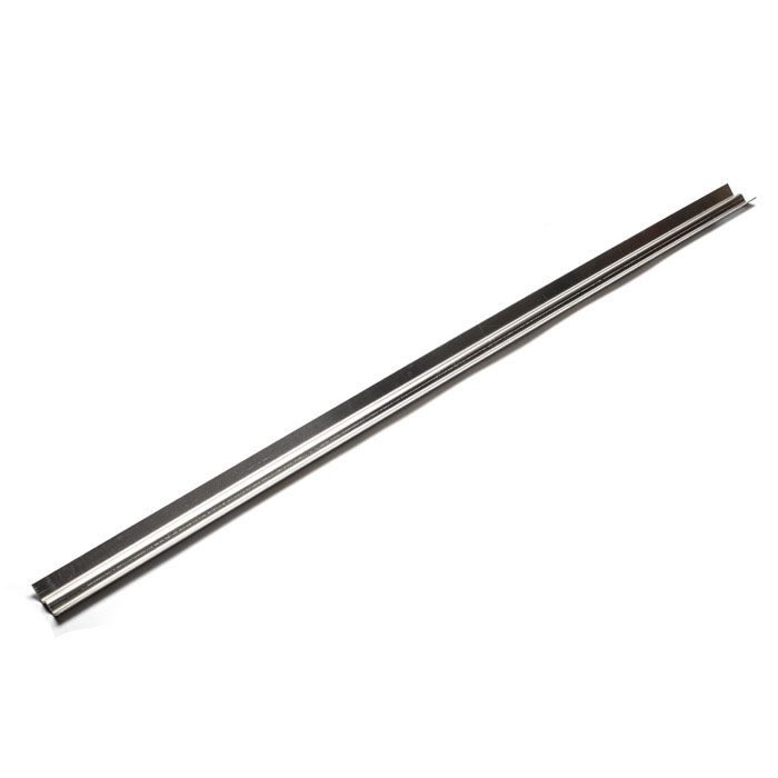 Full vehicle width aluminum reinforcement bracket that installs into the bottom rear edge of the rear body behind both rear lamp panels. Secures the rear body assembly to the rear crossmember. Supplied in unfinished bare aluminum without mounting holes and end brackets. Made in Great Britain by YRM