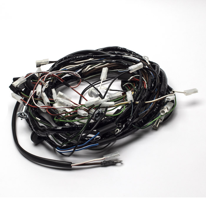 Main wiring harness. Includes wiring for fog and reverse lights for petrol models with the Cold Start Light sender in the cylinder head. For instrument and dash illumination, you will need to purchase five wedge-style bulbs, part # RNE804, one screw base dash bulb, part # RNE847(or PLE847), and two directional indicator bulbs, part # PLE629.