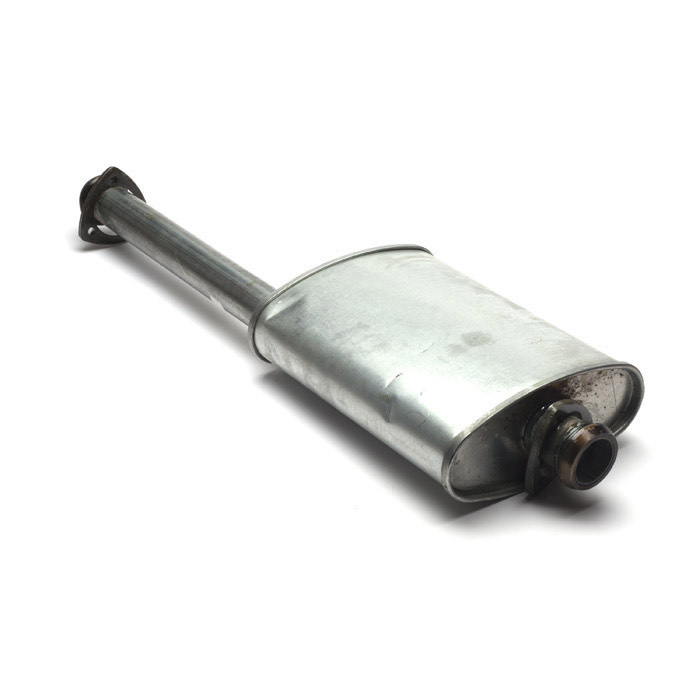 Front silencer assembly for all Defender 110 and 130 models 1983-1986. Installs between the Y pipe and rear tail pipe.