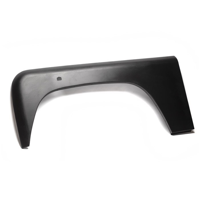 Wing panel, left side, outer, front fender. Pre-cut for lamp. Finished in electrostatic E-Coat black primer. Ready for paint.