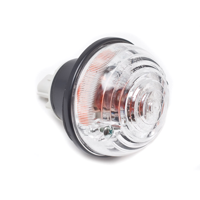 Front indicator lamp assembly with fixed lens. Clear with an amber bulb.