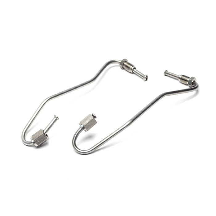 Brake Pipe assembly pair attaches the front flex hoses to the front LH and RH brake calipers. Stainless Steel.