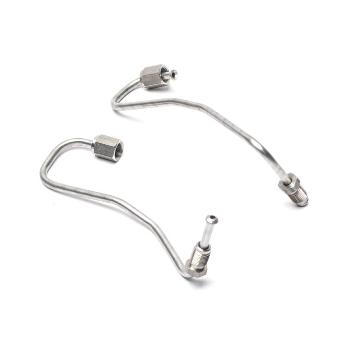Brake Pipe pair attaches front flex hoses to RH and LH front calipers. Stainless steel.