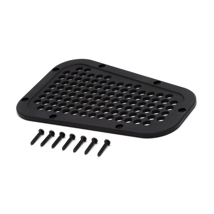 Upgrade your Defender wing tops with black anodized aluminum open grille finishers. Matte black finish, can be painted if a gloss black finish is desired.
