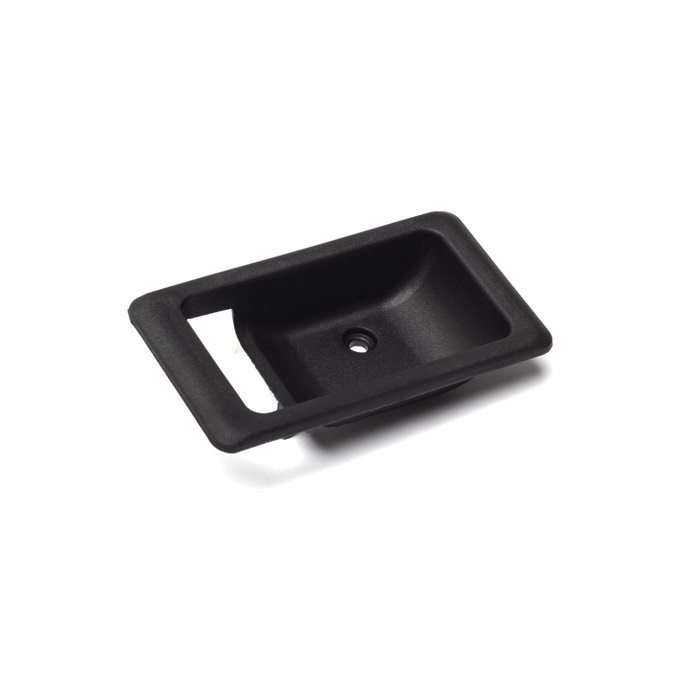 Aftermarket, left side, interior, door handle bezel in black plastic.