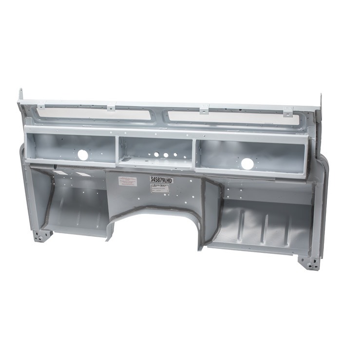 Complete bulkhead assembly for Series LHD Negative Earth models 1967-1971. Negative Earth can be easily identified by a single wiper motor mounted into the dash on the left side of the steering column. Hot dip galvanized for superior corrosion resistance. Ready for paint.