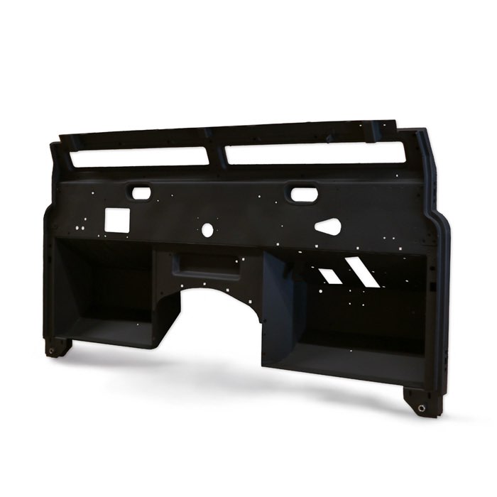 Right hand drive stainless steel bulkhead designed to fit a wider range of applications. Fits V8, 200TDI, and 300TDI applications. Primed and ready to paint. These are made with 304 grade stainless steel with thicker gauge used in the footwells. Welded together with a continuous seam for strength (not spot welded). All components are laser cut and shaped with a digital press prior to welding.