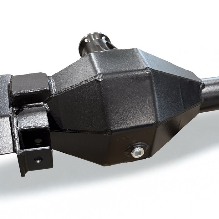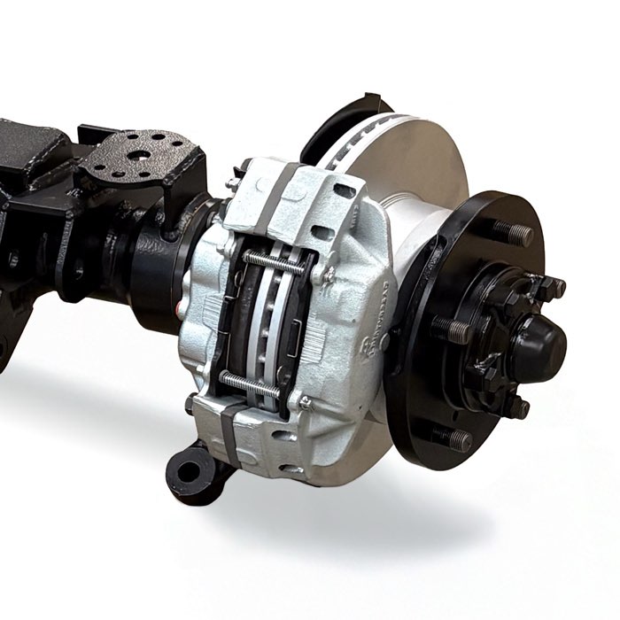 Remanufactured complete non-ABS /ETC front axle assembly featuring a heavy-duty axle case. Built to the latest Land Rover specification with a 4-pin differential assembly and new Genuine or OEM axles, CV joints, swivel balls, top pins, vented disc brakes as fitted from 2007 on, 4 piston calipers, bearings, and oil seals.