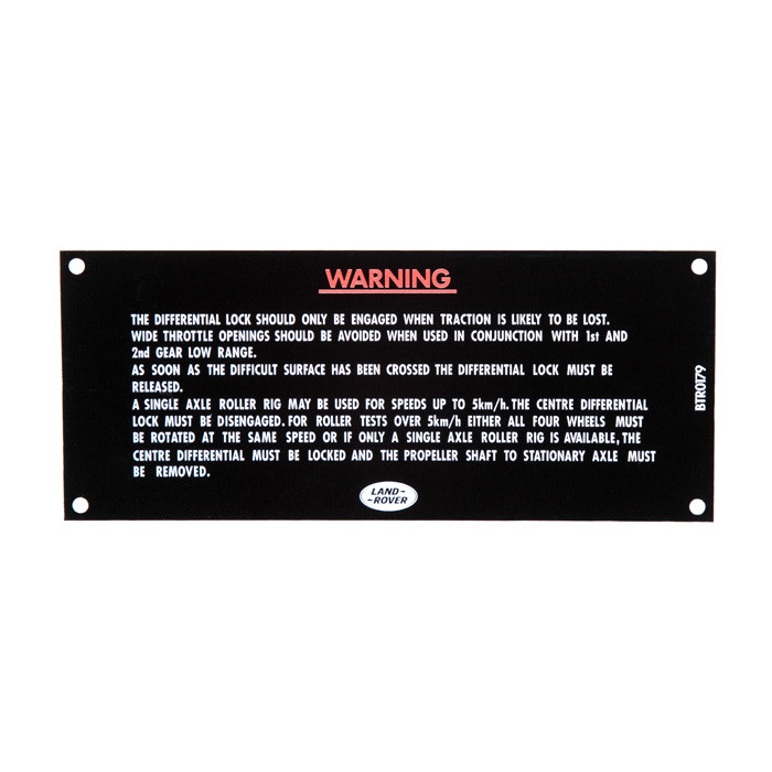 Warning Plate Diff Lock Instr Defender