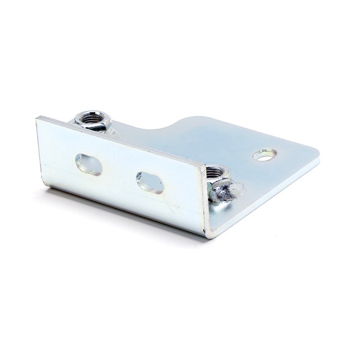 Right hand side seatbelt lower bracket functions as mounting points for both the lower anchor and the reel. Fits behind the front seat. Originally used on military 110 regular.