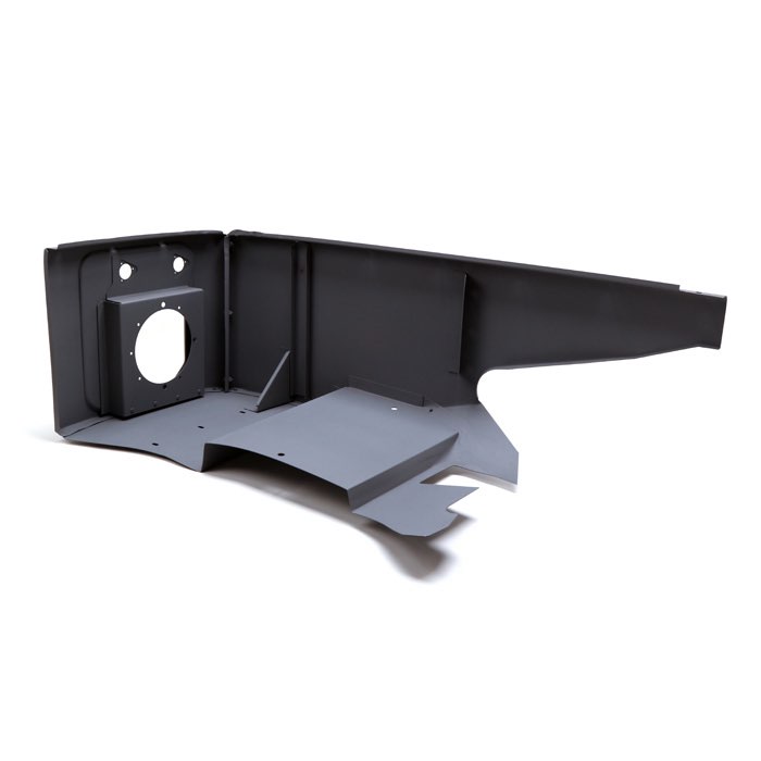 Left hand wing assembly including top, front, and inner panels for Series late IIA and III all 4-cylinder models. Aluminum finished with grey primer paint.