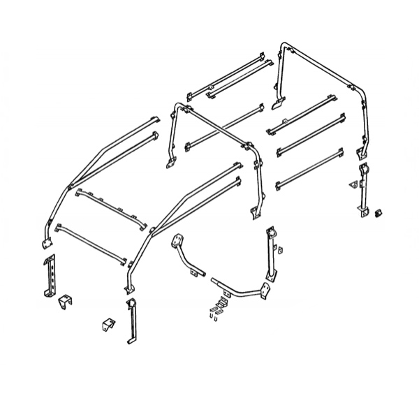 6 point full external bolt-in roll cage for vehicles with bulkhead. Please note that models between 1983 - 1988 had three raised ribs on the roof approx. 22mm (7/8") tall. This kind of roof does not work with our external roll cages as the hoops will clash with them.