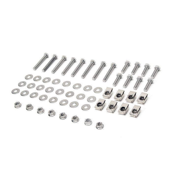 Stainless steel front door hinge bolt kit for early style hinges with hex head bolts. Because this kit uses modern metric hardware, it is recommended for use in restorations using a newer style bulkhead. Original bulkheads have captive nuts in the doorpost which may be difficult to change out.