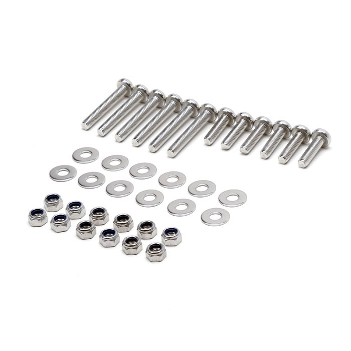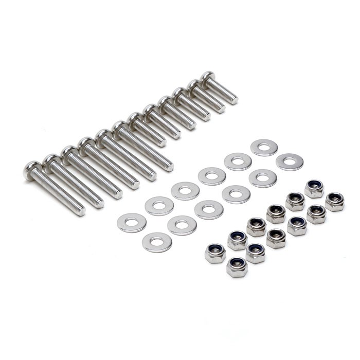 Stainless steel hardware set includes 12 Torx bolts, 12 nuts, 12 washers and a torx bit for replacing the hinge hardware on Defender rear doors with 3 hinges. Features pan head bolts with torx fitting as used on the latest Defenders.
