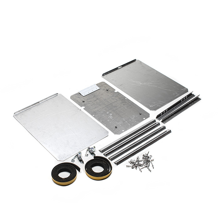Seat box lid kit. Convert your steel seat box lids to aluminum alloy lids. Perfect match for RNA0050 flat pack seat box kit. Includes rivets, alloy securing brackets, Defender style hasps, and gaskets. Made in the UK