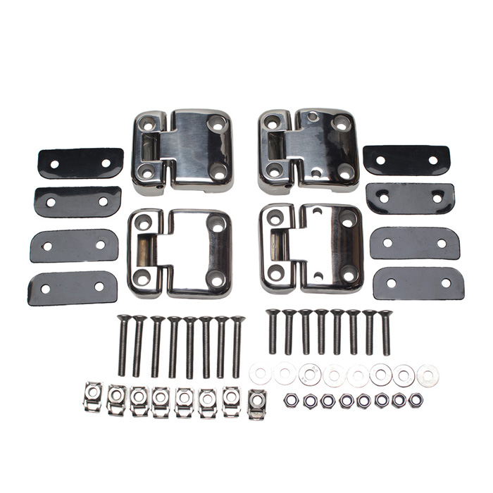 Front door hinge set in stainless steel. With hardware. Includes four hinges.