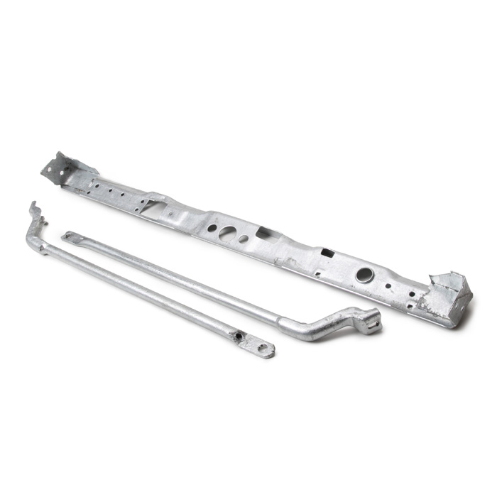 Hot dipped galvanized slam panel with cross braces. This is the panel that connects the front wing tops, supports the radiator top mounts, bonnet closure mechanism and lock. A must on custom builds. Includes hardware. Made in the UK