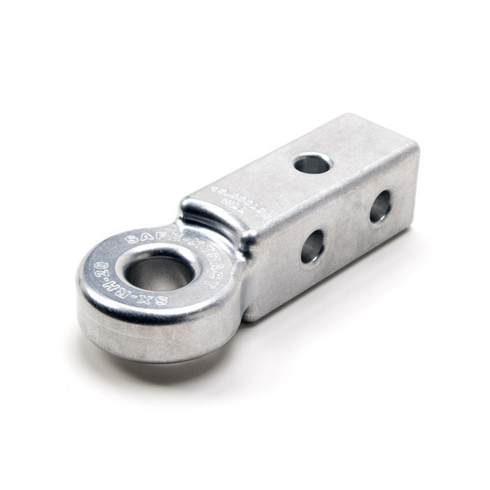 Safe-Xtract 2' billet aluminum recovery hitch - designed for both steel bow and synthetic soft shackles. Cross drilled so it can be mounted in either direction to avoid side loading. Military grade, 10,000 Lbs. working load limit. Made in the US.