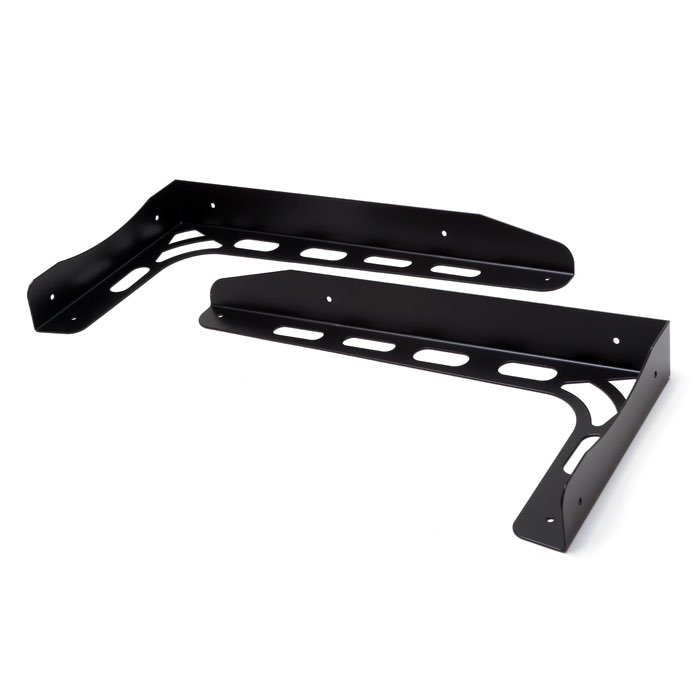 Seat box corner protectors for Defender and Series to protect your carpet while entering and exiting the vehicle. Black powder-coated steel. Does not include hardware.