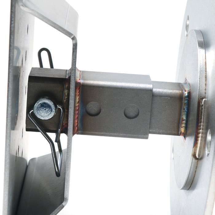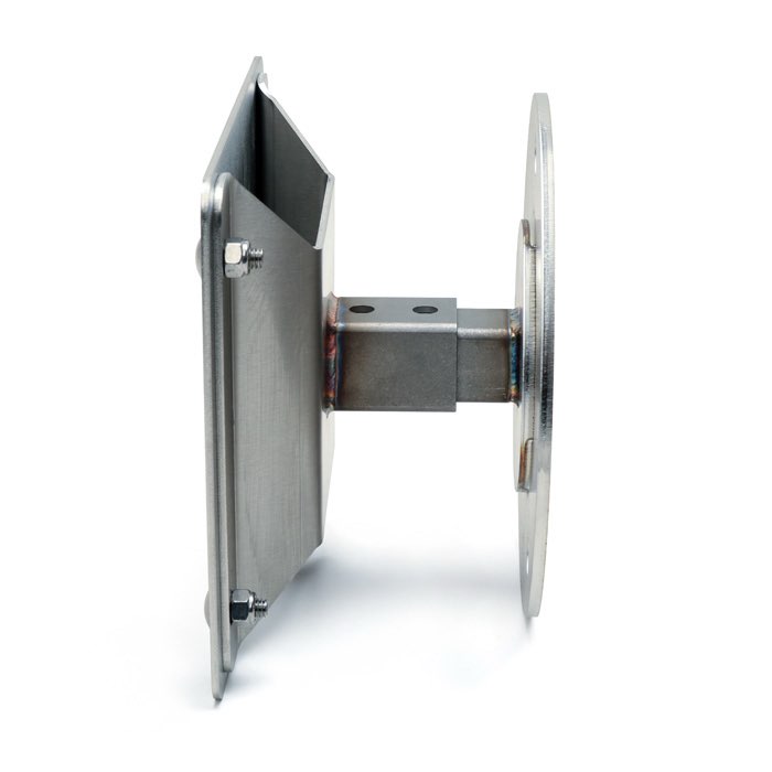 Stainless steel mount assembly allows you to secure one RotopaX container, or two Roto Mold HDPE containers tight to your spare wheel. Our locking mounts provide easy access to mounted containers and spare wheel related accessories with no tools required. 100% stainless steel construction for lifelong corrosion free service. Large 8.5 x 7.5 in. end plate can be easily modified to accommodate other equipment mounts. Made in the USA.