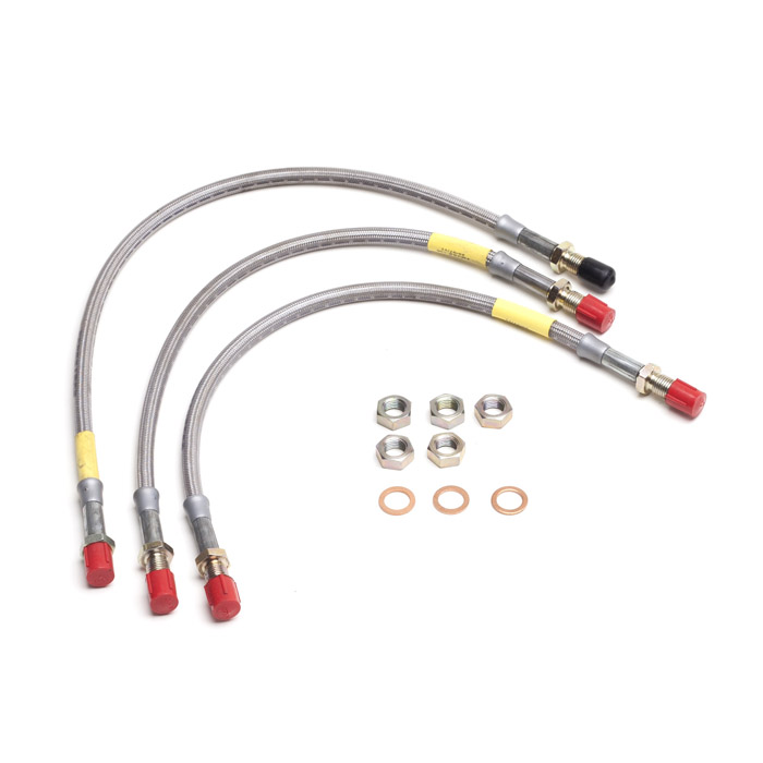 Stainless steel brake line kit. Standard length. Replaces your rubber
