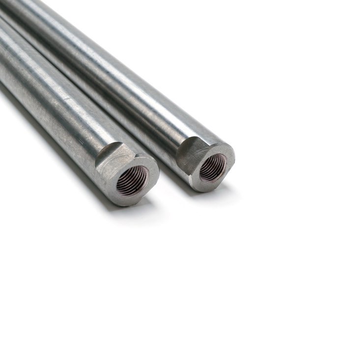Steering rod set made from 303 solid stainless steel bar. This kit includes the drag link rod (the shorter rod fitted from the steering relay to the opposite wheel), the track rod bar (the longer rod fitted between wheel to wheel), and full-size lock nuts. Both ends of the SUMOBARS have machined flats for ease of tightening the lock nuts to the bar, and the right-hand thread is easily identified with a groove machined around the bar and the lock nut.