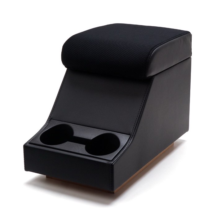 This black vinyl "chubby" box with a black mesh lid features four times the lid padding of a standard ProLine cubby box. The 80mm (3.15") thick padding provides a comfortable armrest to make driving more of a pleasure while the cubby box helps keep your Land Rover free from clutter. Includes a double cup holder. Handmade in the UK.