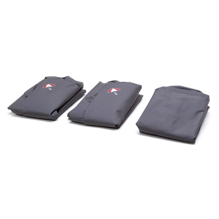 Set of 3 grey waterproof seat covers constructed from durable woven polyester with a PVC backing. Does not include headrest covers. Snug fitting yet easy to install and remove. Washable.