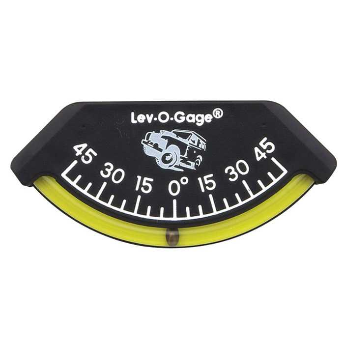 How Far Can You Lean? With the Lev-O-Gage® it’s right in front of you! Mounts to dash or side of doors for approach and departure angles. Adhesive backing allows for easy installation. 3 1/2" x 1 1/2"