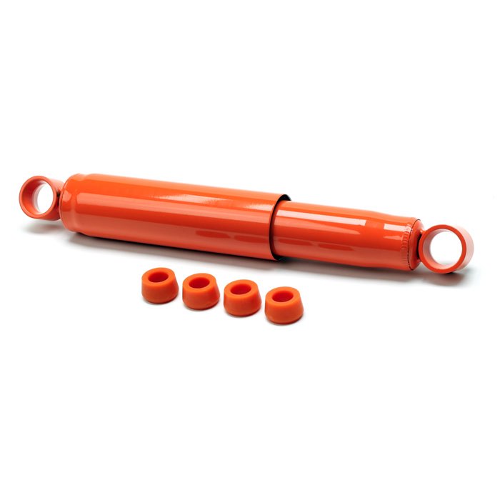 Series 88" extended length rear shock for use with parabolic springs. Features a foam insert rather than pressurized gas, which takes up less space. This allows for 50% more oil, increasing heat dissipation and preventing the oil from boiling. Ideal for on or off-road use. Powder-coated finish with polyurethane bushes.