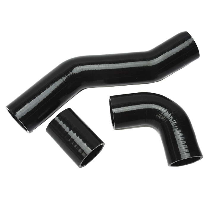 Four piece Black silicone engine intercooler air intake hose set. Superior to original rubber hoses. Will not deform under pressure. Improves air flow during boost. Made in Great Britain.