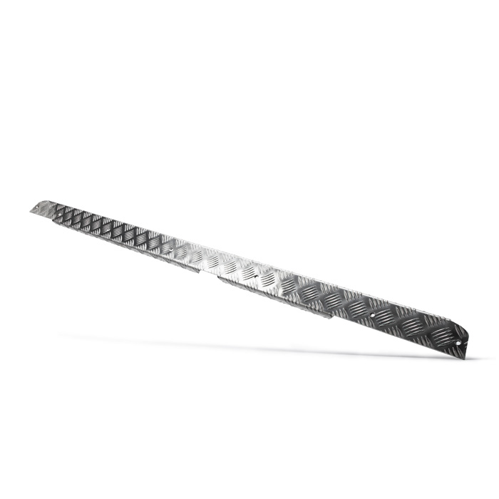 Reinforce your Defender 110 station wagon sills with this aluminum 5-bar chequer plate protection set. 3 mm for superior protection, clear lacquer coated for a gloss silver finish. This kit includes sill protectors, closed cell foam gaskets to prevent dirt ingress, and stainless steel hardware.