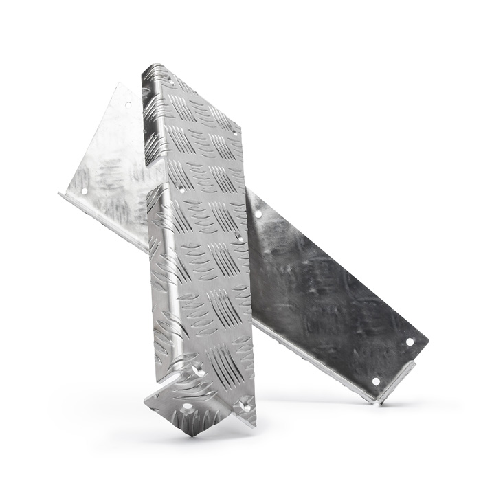 Reinforce your Defender 110 rear corners with this aluminum 5-bar chequer plate protection set. 3 mm for superior protection, clear lacquer coated for a gloss silver finish. This kit includes rear corner protectors, closed cell foam gaskets to prevent dirt ingress, and stainless steel hardware.