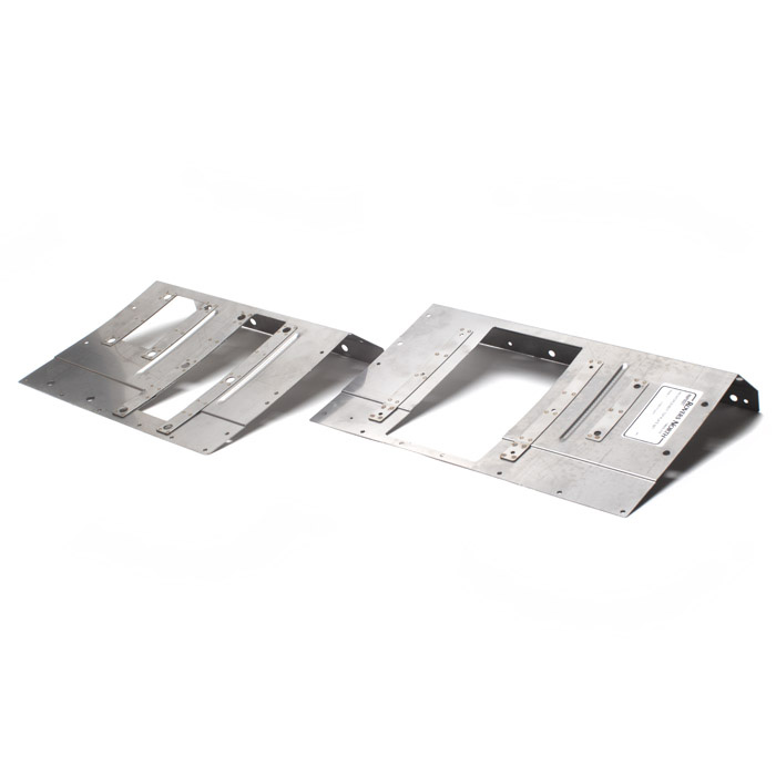 Exact reproductions of Land Rover reinforcement top footwell plates in 304 Stainless steel. When Land Rover first began fitting dual circuit power brake systems in 1969 they added these unique top plates with gussets to their bulkheads to give them extra strength and rigidity. Then for some reason they deleted them just 18 months later. After years of custom building them for customers we finally had them volume manufactured in stainless steel for owners determined to build a better bulkhead. Ideal for dual power brake conversions in early Series II-IIA 1959-1968. Can be added to Genuine and reproduction bulkheads for improved strength. They rivet into the interior top of the footwell and have all the appropriate mounting holes pre-drilled. Sold as a pair for LHD. One plate reinforces LH pedal assembly mountings and the second plate reinforces heater matrix and blower mountings. They also look great. Made in the UK