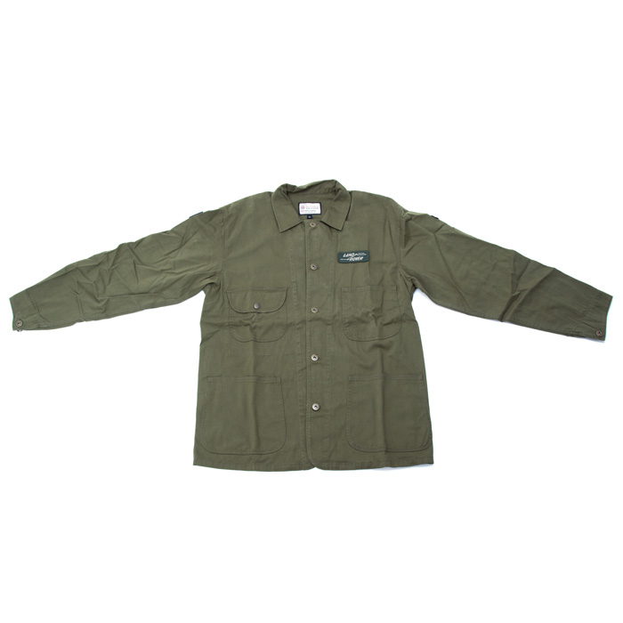 Get the job done in this vintage-inspired Land Rover shop jacket, a timeless design built to last. This utilitarian staple is perfectly engineered for everyday wear in durable cotton with a perfect amount of stretch, numerous pockets, and applique patches as well as a chain-stitched original Land Rover logo on the back.
