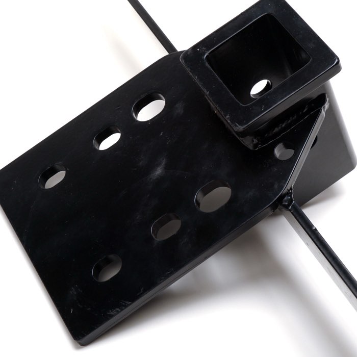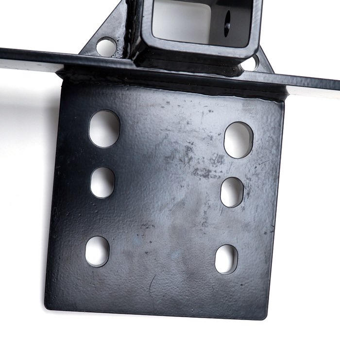 The XD version of our standard Defender hitch. Can be used for towing, but with emphasis on clearance and recovery. Bolts directly onto rear frame member. Will also accommodate a Dixon Bates Military pintle hook secured through the 4 mounting holes above receiver with room to swivel 360 degrees while retaining full use of the Class III receiver.
