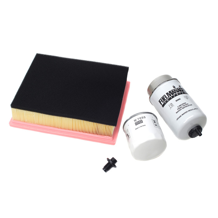 Includes oil filter, fuel filter, air filter, and drain plug with spin-on oil filter.