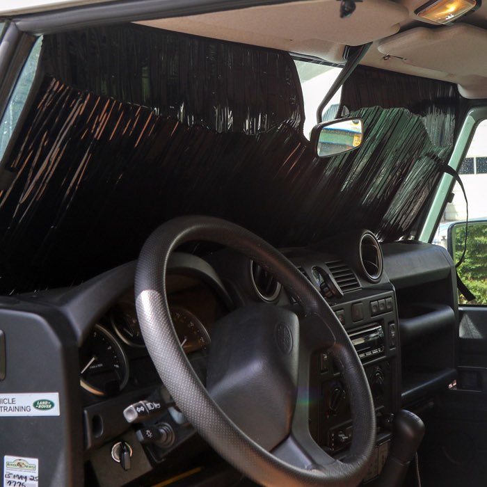 SunShade car window shades are custom-fit for your Defender L316, and when properly installed, will remain snug in each window channel. For added security, fold down the visors to hold SunShade in place.