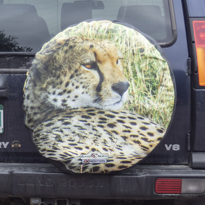 Cover your spare tire from the elements with our premium soft tire cover. Number one choice for easy to use and easy to clean. Constructed of thick, super durable full color vinyl that will not fade, crack, or peel. Features a robust elastic back to ensure a snug fit. Up close photo of a female Cheetah relaxing in the tall grass of the Serengeti near the Northern Tanzania, Kenya border.