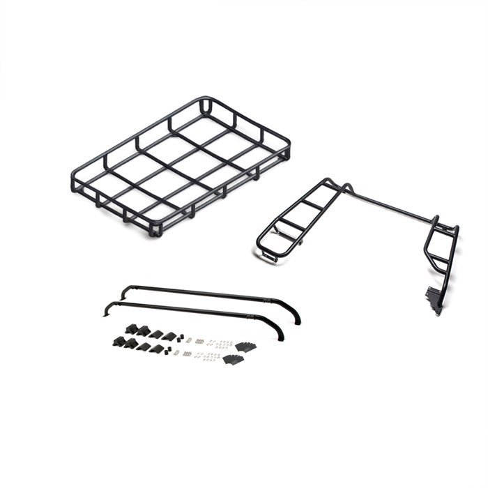 2m x 1.3m roof rack, cross rails and ladder system. Suitable for NAS spec vehicles, and compatible with Safety Devices L138 roll cage. The rack covers the full length of the vehicle. It is supplied with two cross rails and a double rear ladder which mounts to existing fixings in the rear crossmember and also to the capping either side of the rear door. Please note: the original cast clamps are no longer available and have been superseded by compatible machined alternatives.
