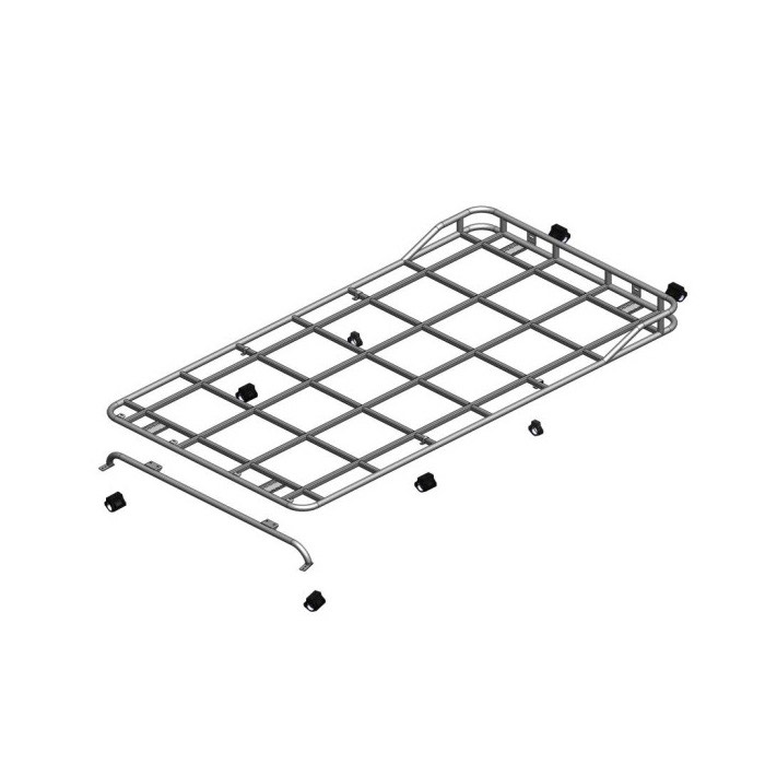 2.8m x 1.4m 'Explorer' roof rack with short luggage rail for side loaded tents. For vehicles with external roll cage. Use RRL232RR-RG-FK to covert to Rain gutter mounting