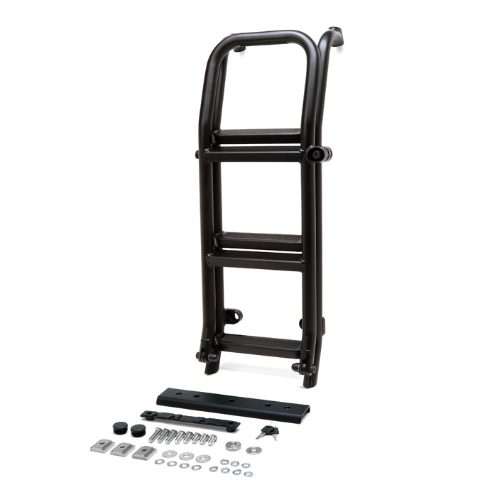 Ladder is grit blasted, primed with zinc enriched powder undercoat and finished with a durable black powder coat. Kit comes with all nuts, bolts and fixings