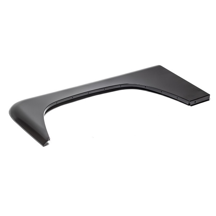 Wing panel, left side, outer, front fender. Solid panel, not cut for intake or side lamp. Finished in electrostatic E-Coat black primer. Ready for paint.