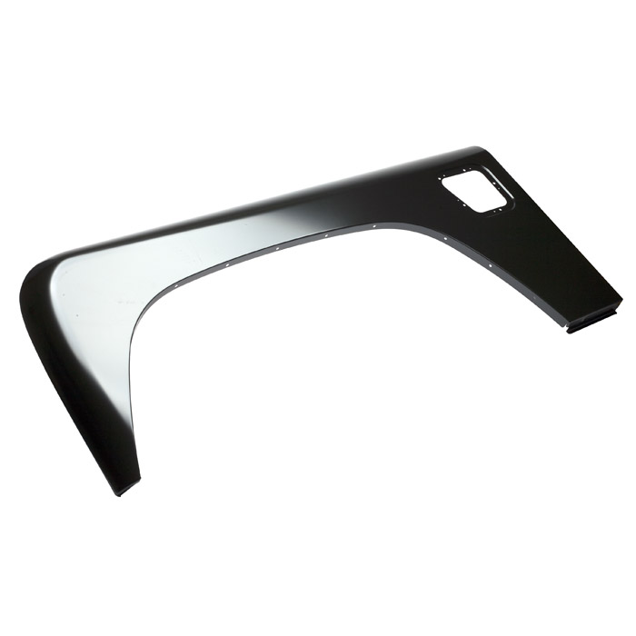 Wing panel, left side, outer, front fender. Pre-cut for intake. Finished in electrostatic E-Coat black primer. Ready for paint.