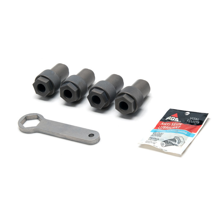 The Door top Nuts are CNC machined from Billet 6061T6 and come with a matching spanner to tighten the nuts down. We also include anti-seize to prevent the possibility of corrosion when using original door tops with steel studs.