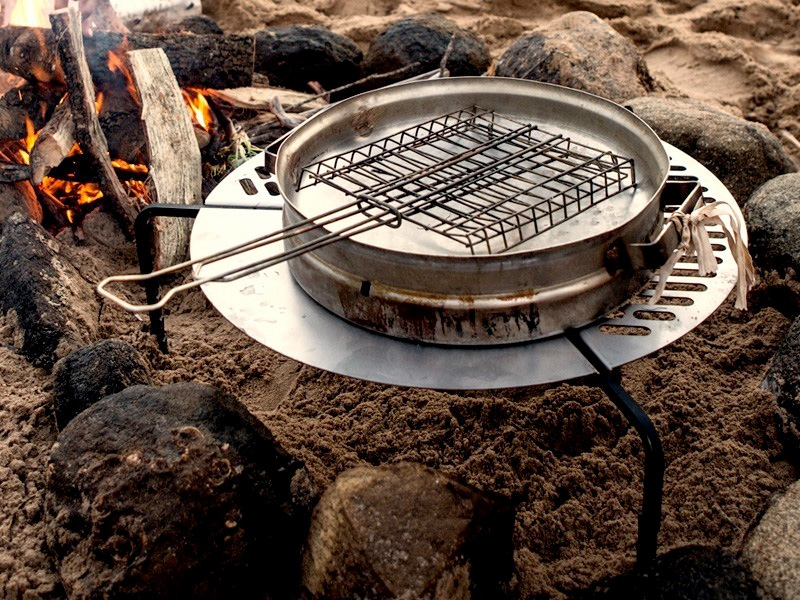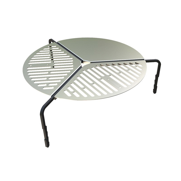 This ingenious, all stainless steel cooking grate, stores over your spare tire and takes up virtually no space.